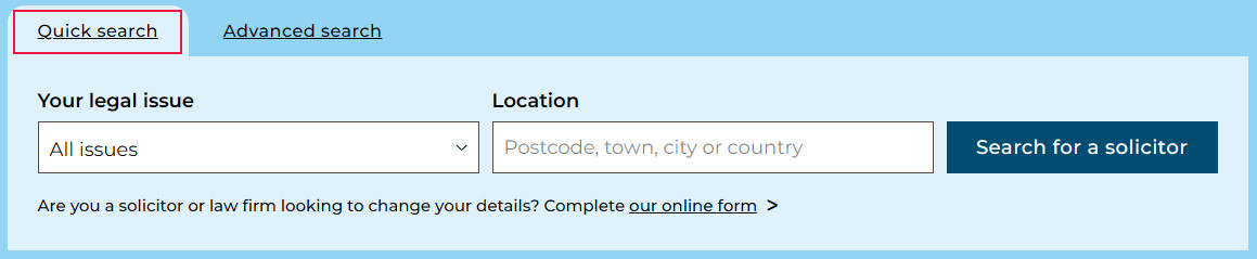 Use the quick search tool to search for a law firm or other regulated organisation by the legal issue you need a solicitor’s help with and a location.